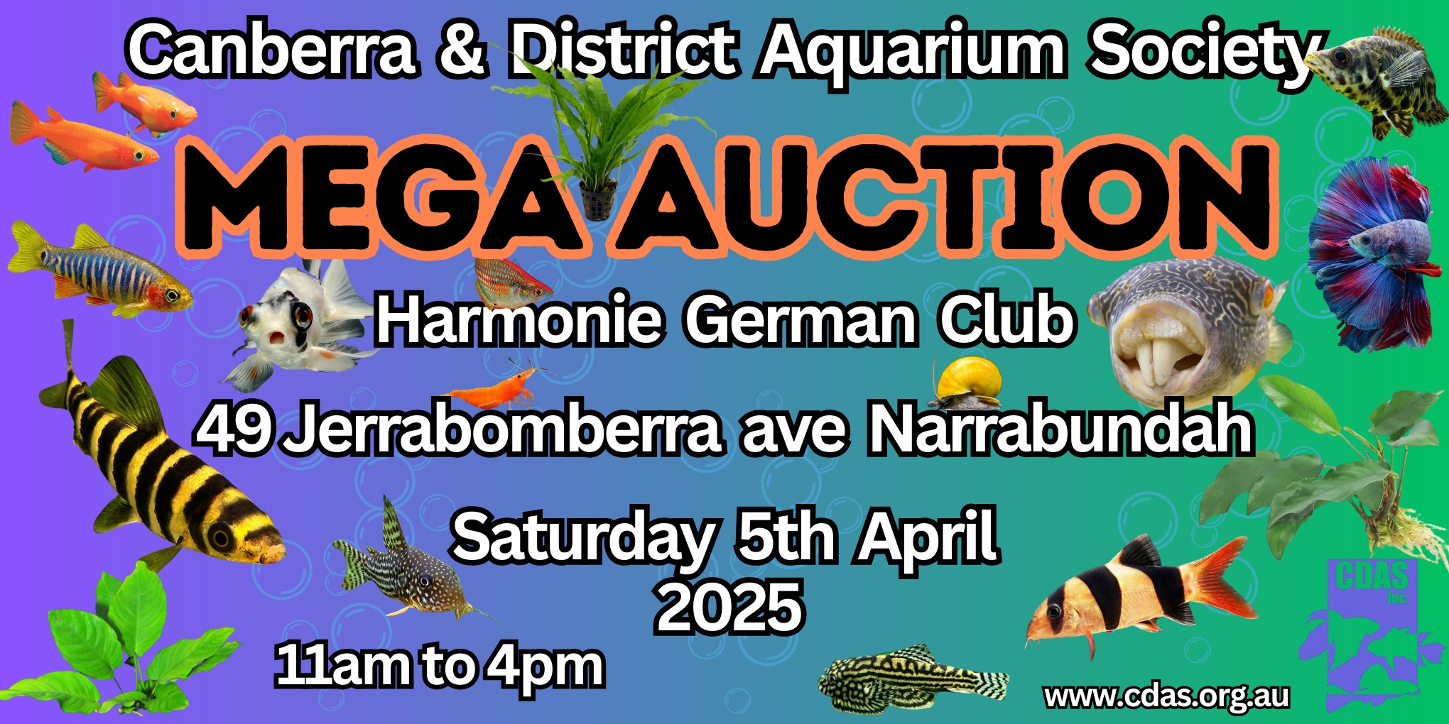 The CDAS Mega Auction is Canberra’s premier auction of aquarium fish and plants, and other aquarium supplies, much of it is only at this event.